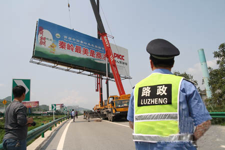 為凈化行車環境,提升高速公路形象,消除安全隱患,陜西省交通建設集團公司西商分公司商州西管理所于8月26日對三處拒不整改的廣告牌進行強制拆除和清理。