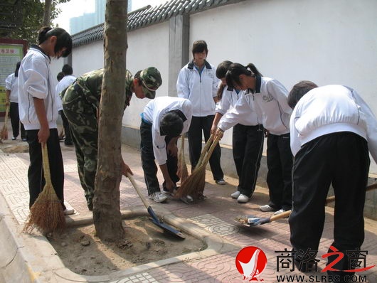今天是開學第一天,商洛職業學院的學生走上街頭,打掃衛生。