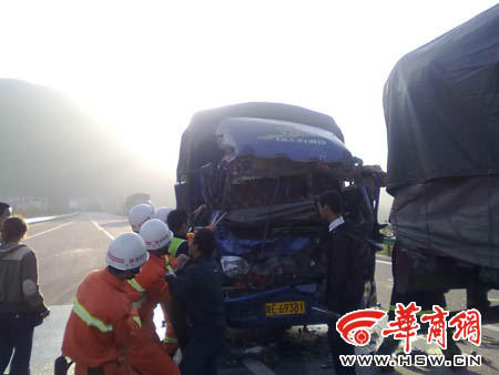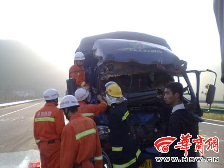事故地點(diǎn)處于滬陜高速上方向金嶺隧道出口+200米處,一輛車牌號為陜E69381駛向西安的中型貨車,由于司機(jī)疲勞駕駛,加之車速過快,剎車不及追尾撞向同是駛向西安的掛車牌號為豫L811掛的大型貨車,事故車輛停于高速路中央,駕駛室嚴(yán)重變形,2人被困于駕駛室內(nèi),其中副駕位被困情況較嚴(yán)重,情緒非常急躁,不時(shí)發(fā)出凄涼的呼救聲。