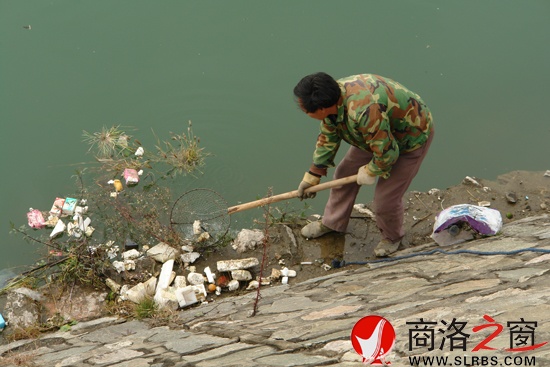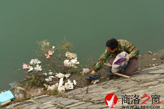 27日中午10時許,記者路過丹江,看到一名中年男子正順著丹江邊的石坡往下爬,腰間綁著繩子,繩索的另一端系在護欄上,手中拿著掃把、耙子一類清潔用具。據這位龍姓男子講,他是商州區楊峪河鎮的農民,來城里打工,被商洛市環保局雇用,主要是清理丹江兩岸水上漂浮的垃圾。記者現場看到,這群與江邊"頑疾"對抗的人,女性居多,約四五十歲的年齡。據介紹,他們每天早晨七點上班十二點下班,下午從一點半干到六點為止,男女工資不等,男性一天80元女性60元。龍師傅對記者說,由于部分人士不注重環保,生活垃圾便常常漂浮在丹江里,他們只能下到水邊徒手清理,垃圾裝滿隨身拿著的袋子后,他們便解下綁在腰間的繩子讓岸上的人拉上去,如此反復。路過的李先生希望通過記者呼吁人們,要切實提高環保意識,不要亂扔垃圾,讓這些"頑疾"不再復發。