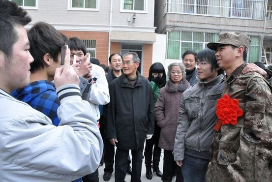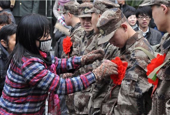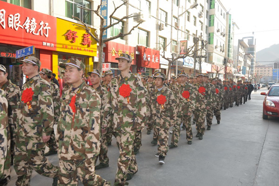 12月9日,鑼鼓震天,彩扇飛舞,一個個身穿迷彩服、戴著鮮花陽剛健壯的70余名青年組成的長龍,在千余名群眾的簇擁下,沿著縣城大街進行盛大游行,引得過往行人駐足觀看,觀望的眼神中折射出許多仰慕之情。