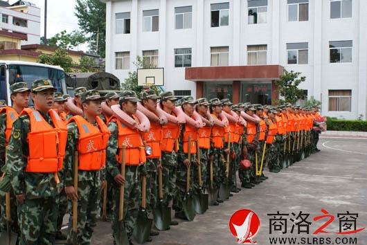 本網訊 進入汛期以來,武警商洛市支隊針對駐地防汛形勢,始終保持良好的戰備狀況。6月16日,他們以發生洪災為背景,舉行搶險演練。(白英/攝)