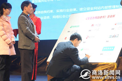 典禮上,商洛新聞網向全市互聯網從業者和網民發出《文明辦網 文明上網》倡議,商洛新聞網、商洛之窗、商洛在線、商南宣傳網、丹鳳宣傳網、鎮安在線、山陽在線、洛南生活網、柞水新聞網9家網站負責人簽署了《文明辦網自律書》,號召廣大網站文明辦網、廣大網民文明上網,共同推進商洛網絡文化建設健康發展。