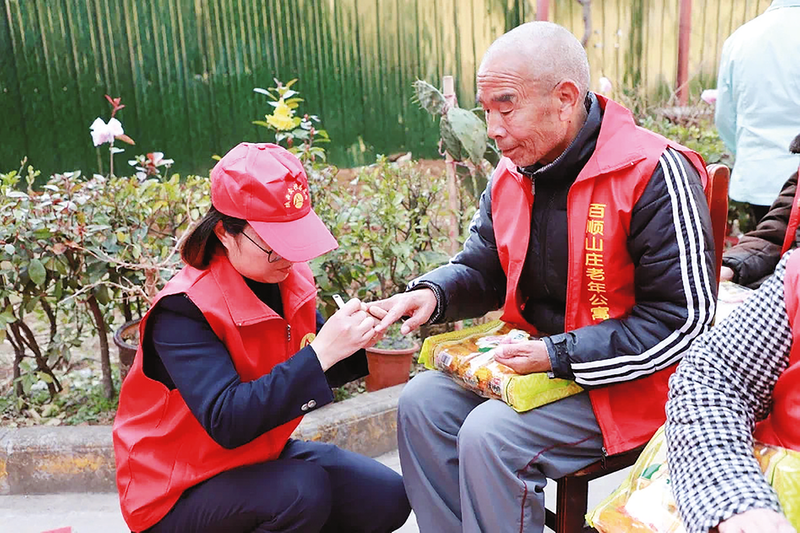 志愿者在商州百順山莊老年公寓獻(xiàn)愛心