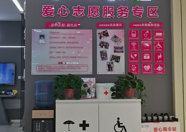 商洛移動通信路營業廳在廳內明顯位置設立了“愛心志愿服務專區”,配置雨傘、醫療箱等多種免費便民物品,為外賣小哥、快遞員、環衛工人等戶外工作者提供充電、茶水等多項暖心服務,保證戶外勞動者“渴能喝水、熱能乘涼、冷能取暖、累能休息、傷能急救”,日均服務20余人;定期開展智能手機應用輔導、防詐騙講座等活動,助力老年客戶跨越“數字鴻溝”,自2023年10月建成以來累計服務1000余人次。