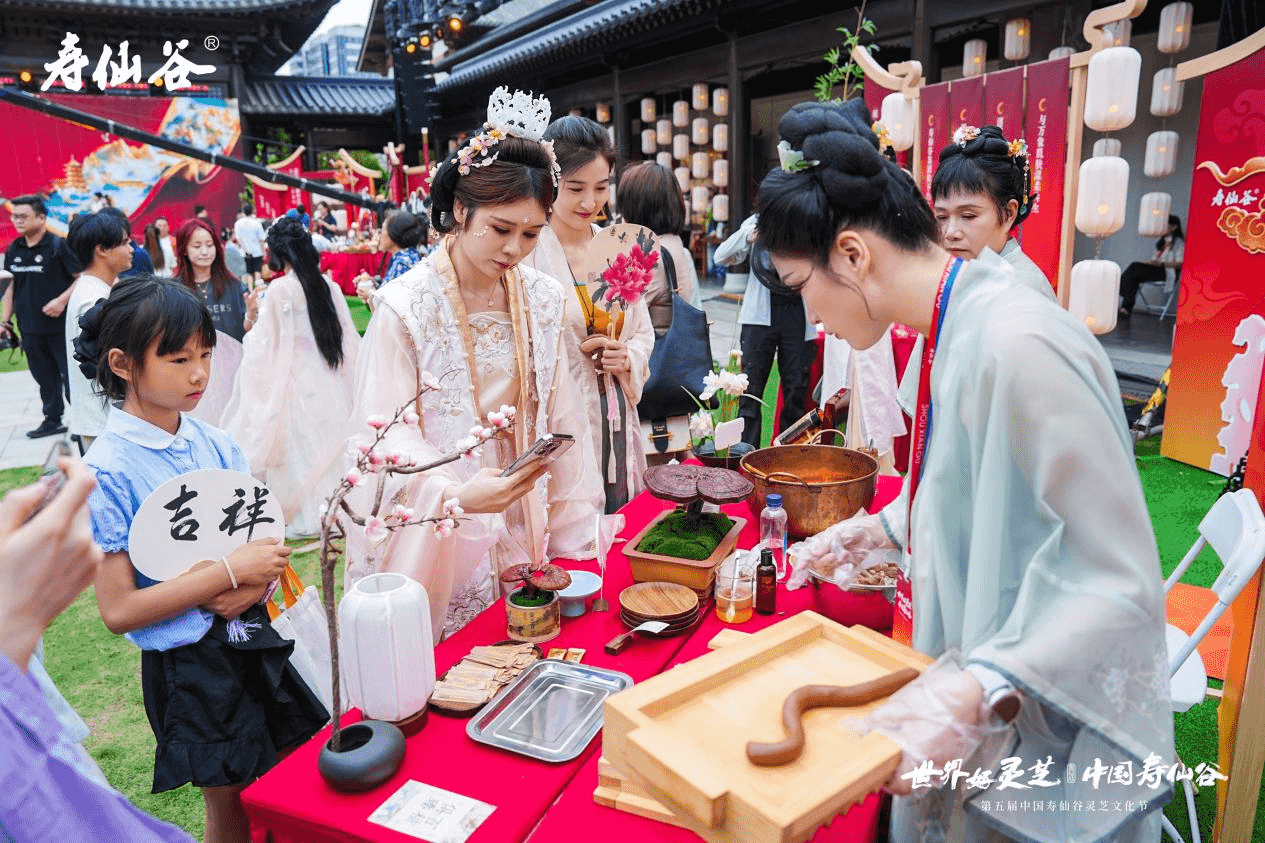 本屆壽仙谷靈芝文化節巧妙融合了傳統中醫藥文化與現代互動體驗,通過“中醫文化展示+宋韻游園+趣味打卡”創新形式,讓參與者在移步換景間感受靈芝文化的深厚底蘊。