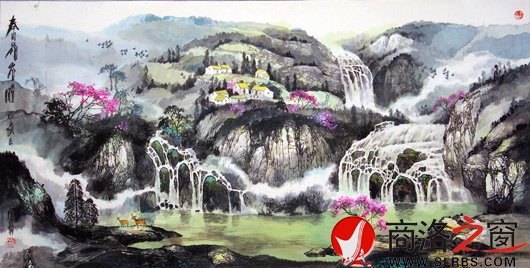 人們都知道,劉鳳林的山水畫文人氣息濃厚,他不畫大山大水,也不畫急流險灘,最喜畫的是山村野店,溪流淙淙;桃花盛開,村姑道情;犬吠深巷,飛鳥相還。這些鮮活的生活小景,在他的筆下信手拈來,自然成趣。為畫好商洛山水,他常常外出寫生,風雨無阻,厚厚的幾大本速寫簿記錄著他的酸、甜、苦、辣,在厚積薄發中逐漸形成個人風格。劉鳳林用短短十年時間,打造了屬于他的個人山水空間,在中國畫壇享有盛譽,但是他并沒有居功自傲,反而在山水畫題材及表現上開拓出新的意境,在山水中增添了山鹿題材,足見其藝術進一步成熟,藝術視野進一步開闊。