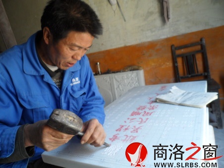 “我這個石刻雕琢的手藝是祖傳的,爺爺張生華、父親張開齊都是他們那個年代本地出名的石刻手藝人,我從小便受父親的熏陶,耳濡目染地也喜歡上了石刻工藝。干碑石雕刻這門活計很辛苦,臟累放一邊,一年四季下來刻出三四十塊碑也賺不了多少錢,加上被邀上門做的石刻作品,平均下來一年就是兩三萬元的收入,勉強夠維持一家生計。相比較現在的電腦雕刻,人家字面的美術度、雕刻工藝的精準度我無法企及,但我不羨慕他們,因為我這個是純手工毛筆碑面寫字,純手工工藝雕刻的,含金量與電腦雕刻的大有不同,但凡識貨的都會奔著我這個來。”看我很有誠意,老張索性打開了話匣子。“我做此活計都30多年了,一輩子就喜歡這個。前年咱商洛有家電視臺來采訪我,說這屬于民間工藝,要我談談對這門手藝的傳承和看法,我實話實說,‘這門手藝到我這里就算到頭了,時下有了電腦機械加工的石刻工藝,受它的市場沖擊,現在人工雕刻的作品少有人喜歡了,就連我的兒子也看不上學,嫌又臟又累、枯燥無味,現常年在上海打著零工’。好在還有我在,說實話,我真的不想這門手藝在我手上失傳的。”