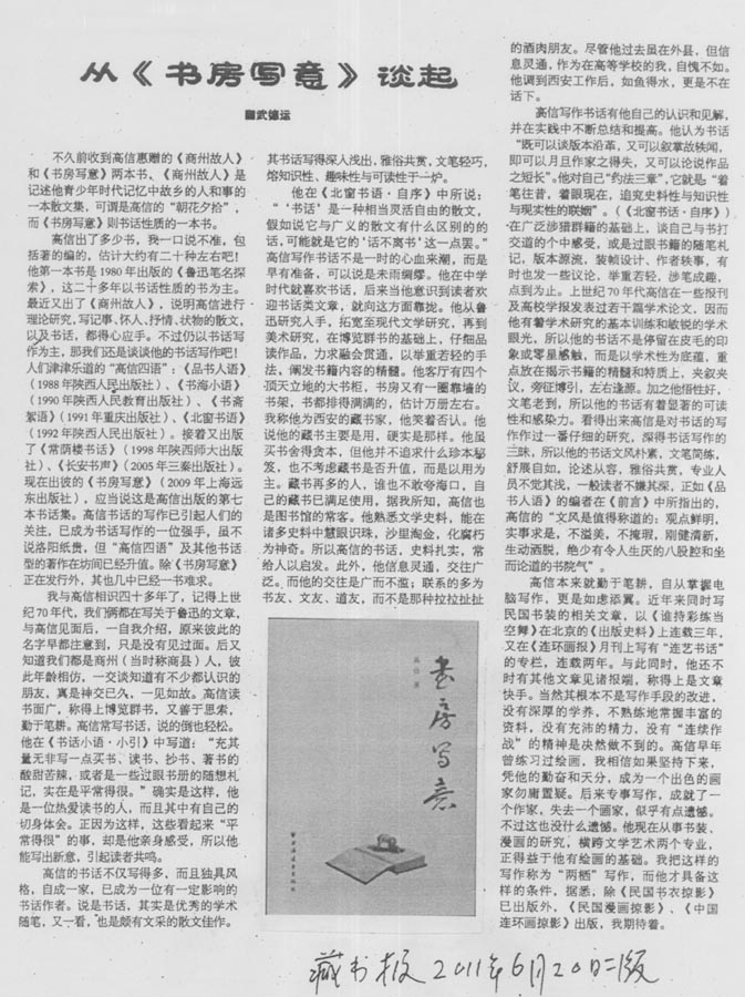 2011.6武德運在《藏書報》刊發的《從<書房寫意>談起》