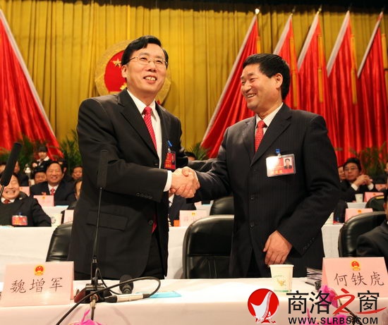 魏增軍向新當(dāng)選的市人大常委會主任何鐵虎表示祝賀