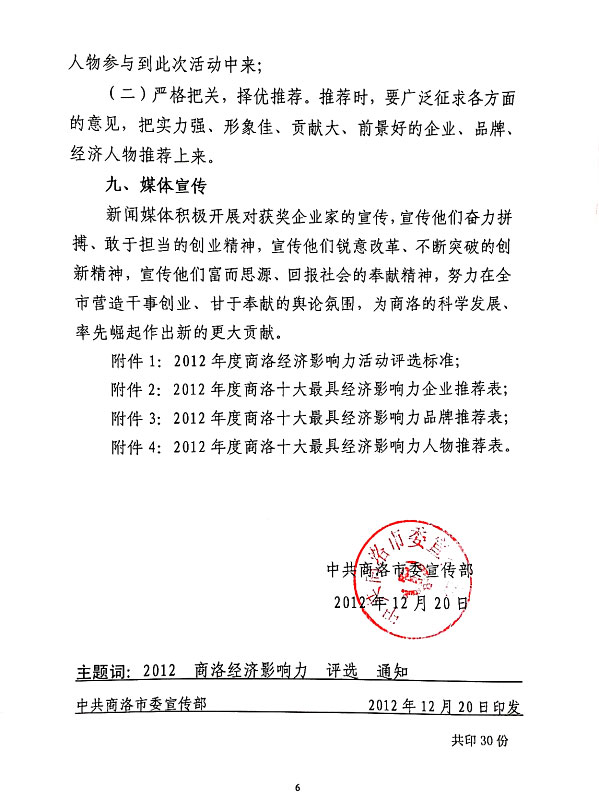 關于舉辦2012年度商洛經濟影響力評選活動的通知