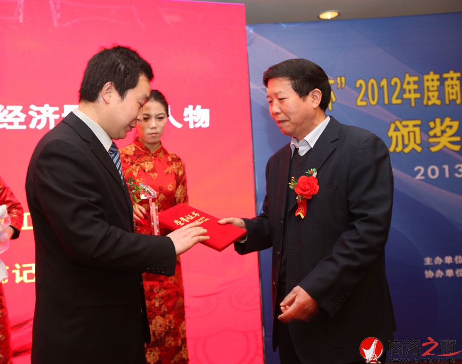 市委宣傳部副部長王林斌為2012年度商洛最具經濟影響力人物獎項獲得者頒獎。