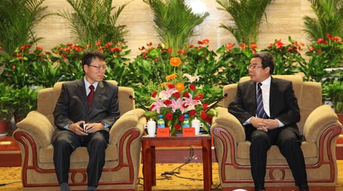 會見中,楊冠軍首先對全泰東一行來商訪問表示熱烈歡迎。在簡要介紹了我市的區位、生態、資源、文化優勢和經濟社會發展整體情況后,楊冠軍說,隨著基礎設施的逐步改善,商洛已融入西安一小時經濟圈,商丹循環工業經濟園區被批準為省級工業園區,商洛已納入關中——天水經濟區。良好的生態環境,優越的資源條件,潛在的區位優勢,商洛充滿著突破發展的生機和活力。希望總領事通過到商洛的訪問,進一步加強對商洛的了解,積極向韓國客人推介、宣傳商洛,為韓國企業家與商洛市合作牽線搭橋,推動雙方往來在更高層次、更廣領域內獲得新的更大發展。商洛市各級政府和相關部門將全力支持、優化服務,為前來商洛市合作興業的韓國各界人士創造良好的外部環境,共同開創互利合作新局面。