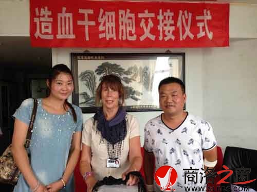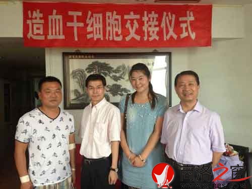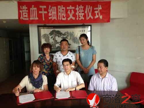前排從左到右依次是英國醫生、中華骨髓庫北京總庫的劉維新副主任、中國造血干細胞捐獻者資料庫陜西分庫主任劉耀堂,后排從左到右依次是我省首例涉外捐獻造血干細胞志愿者他愛人、我省首例涉外捐獻造血干細胞志愿者、楊鑫。