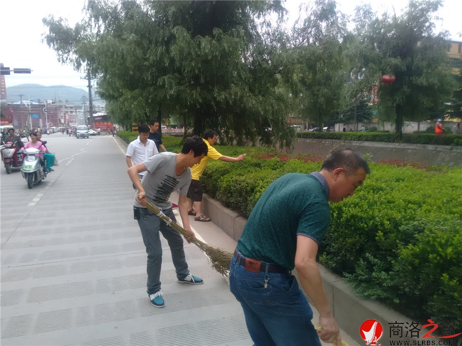 商洛日報社組織職工清潔街道。(支曉宇 李小軍 攝)