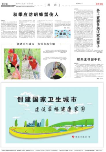 另外,三版通過《環(huán)保督查》 《健康教育》《創(chuàng)文進(jìn)行時(shí)》等專題專欄,全面深入報(bào)道了我市科教文衛(wèi)等方面的進(jìn)展成就,展示了全市衛(wèi)生、教育、科技事業(yè)發(fā)展碩果,有效發(fā)揮了普及科學(xué)知識(shí)的作用。