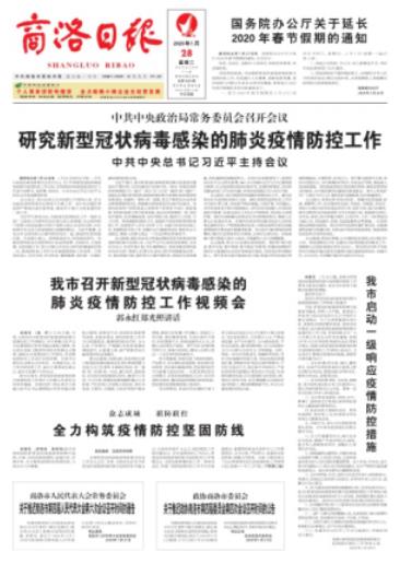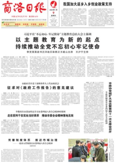 2020年,在中共商洛市委的堅(jiān)強(qiáng)領(lǐng)導(dǎo)下,在市委宣傳部的精心指導(dǎo)下,商洛日?qǐng)?bào)堅(jiān)持以習(xí)近平新時(shí)代中國(guó)特色社會(huì)主義思想為指導(dǎo),以學(xué)習(xí)宣傳貫徹黨的十九大、十九屆五中全會(huì)精神和習(xí)近平總書記來陜考察重要講話重要指示精神為主線,緊緊圍繞全市中心工作,著力強(qiáng)化新聞?shì)浾撘龑?dǎo)力、報(bào)業(yè)經(jīng)營(yíng)競(jìng)爭(zhēng)力和新聞隊(duì)伍影響力,全力講好商洛好故事、傳播商洛好聲音,為推動(dòng)全市經(jīng)濟(jì)社會(huì)高質(zhì)量發(fā)展提供了強(qiáng)大的精神動(dòng)力和輿論支持。