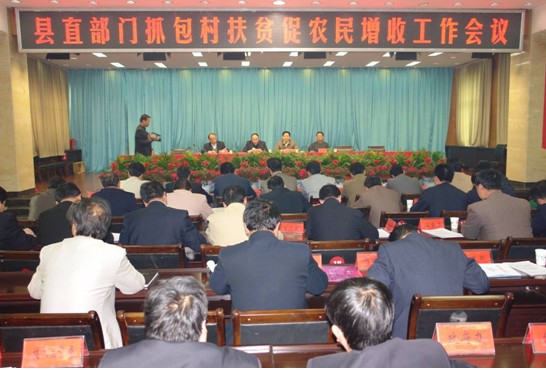 會上,縣政府副縣長黨建平就去年3月份以來縣直部門、單位包村扶貧促農民增收工作開展情況進行了通報,縣委副書記朱春青就2010年縣直部門和單位結對包扶工作做了全面部署和安排。黨建平副縣長指出:去年以來,全縣130個部門和單位結對包扶130個村,以加快社會主義新農村步伐為目標,以產業開發和農村基礎設施建設為主攻方向,千方百計跑項目、引資金、辦實事、解難題,共計投入資金2.3億元,實施項目368個,有力地推動了全縣"一村一品"建設和基礎設施建設。全縣扶貧開發工作按照"優化服務、強化管理、打造亮點、培育精品、爭創一流"的總體思路、始終堅持"一體兩翼"扶貧戰略,不斷加強基礎設施、產業基地和致富能力三大建設,進一步強化干部職工學習、服務、責任、紀律四種意識,扶貧開發五大工程取得明顯成效,重點項目建設完成固定資產投資4364.2萬元,增長124.7%,完成了5300戶、22000人實現了增收脫貧,貧困人口大幅減少,農民收入不斷增加,農村面貌發生了很大變化。朱春青副書記要求:各包扶部門要統一思想、提高認識,切實增強做好包村扶貧工作的責任感和使用感。全縣各級各部門一定要站在全局和戰略的高度,進一步提高對包村扶貧工作重要性的認識,切實增強責任和使命感,加強領導,強化措施,動員和組織縣直部門單位包村抓扶貧,大力支持扶貧工作,全力落實扶貧項目,著力推動扶貧開發,努力開創全縣包村扶貧促增收工作新局面。