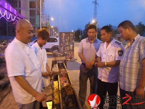商洛日報社(劉春榮)丹鳳縣食品藥品監督管理局為確保廣大消費者夏季燒烤食品安全,近日組織執法人員對全縣27家夜市燒烤經營戶進行了專項執法檢查。據介紹,這次檢查取締違法經營1家,沒收不合格肉制品1.6公斤、發放監督意見書27份、責令改正12戶。圖為執法人員正在依法進行燒烤食品安全執法檢查。