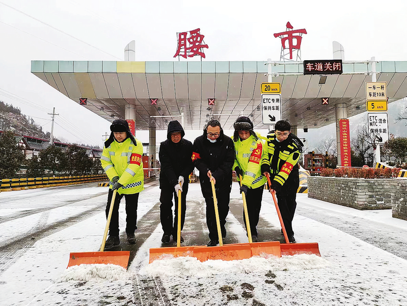 雪情發(fā)生后,分公司全體職工、車輛設備第一時間投入到除雪工作中。根據(jù)路段積雪結冰實況和車輛通行流量情況,結合秦嶺山區(qū)路段橋隧比例高、風大雪大霧大的特點,合理分配機械物資的用量及投入時機,堅持機械為主、人工為輔的除雪方式,利用除雪車、高速滾刷、液態(tài)融雪劑灑布車等機械車輛,進行機械組合、梯隊聯(lián)合的24小時不間斷作業(yè),全力保障秦嶺山區(qū)路段暢通。針對橋面、隧道出入口、陡坡及彎道等重點路段,科學合理使用液態(tài)環(huán)保型融雪劑。發(fā)揮監(jiān)控分中心統(tǒng)籌調(diào)度職能,對重點路段和重點點位開展視頻輪巡,提升風險防控意識和應急處突能力。利用情報板及時發(fā)布交通誘導信息,第一時間對重點路段撒布融雪劑,設置惡劣天氣臨時警示標志,搶抓有利時機,全力以赴戰(zhàn)風雪。各收費站集中對收費廣場、車道等重點部位進行清理,確保路面暢通無積雪,人民群眾出行安全。