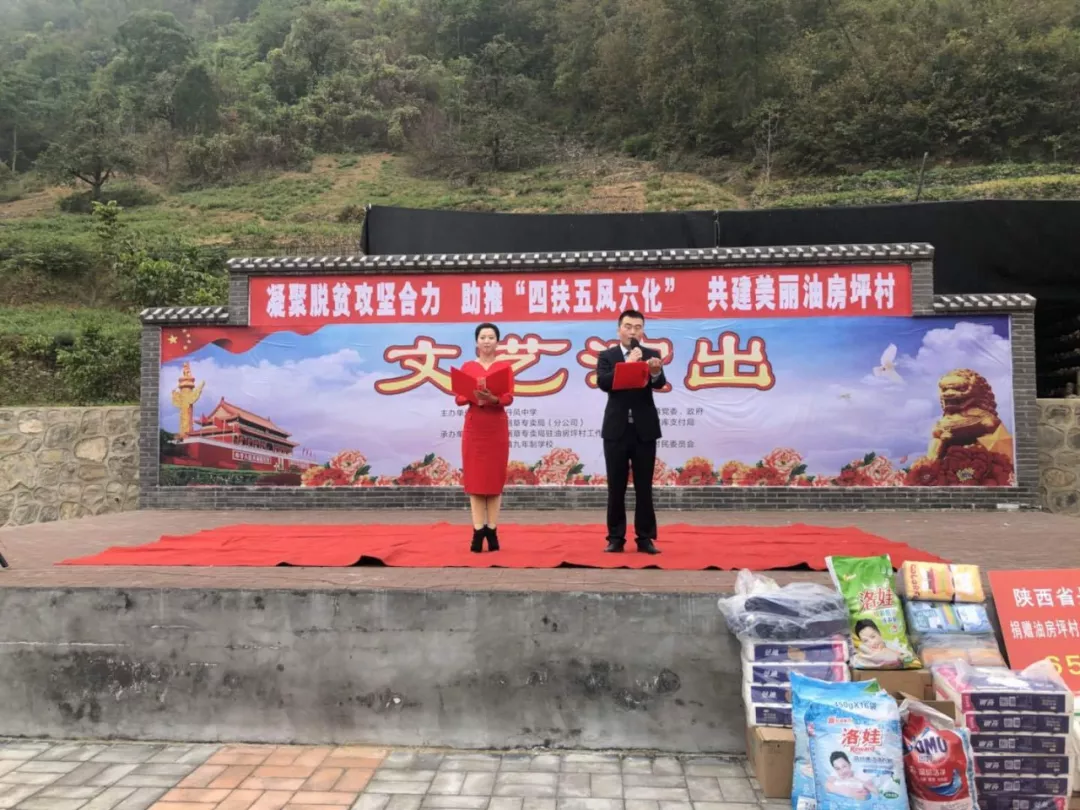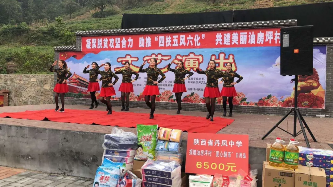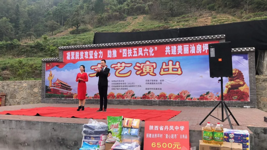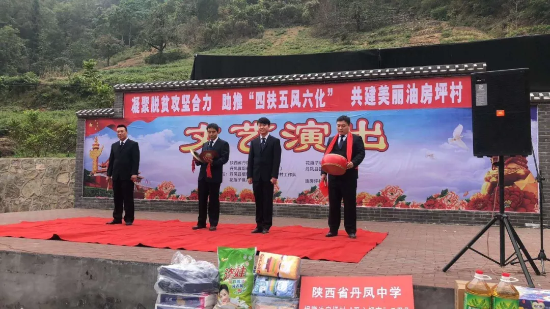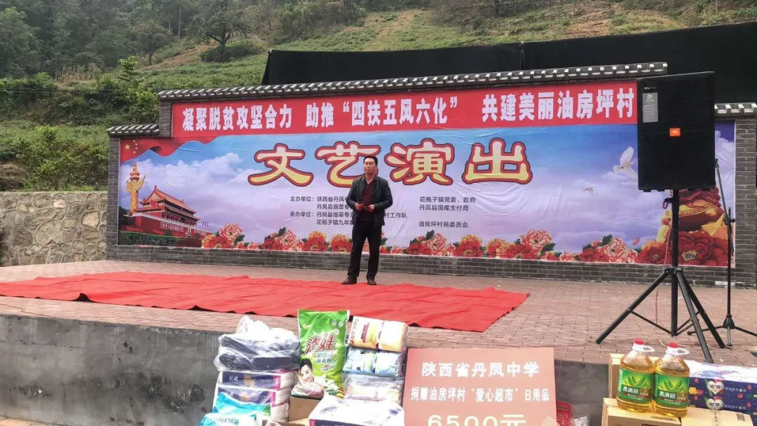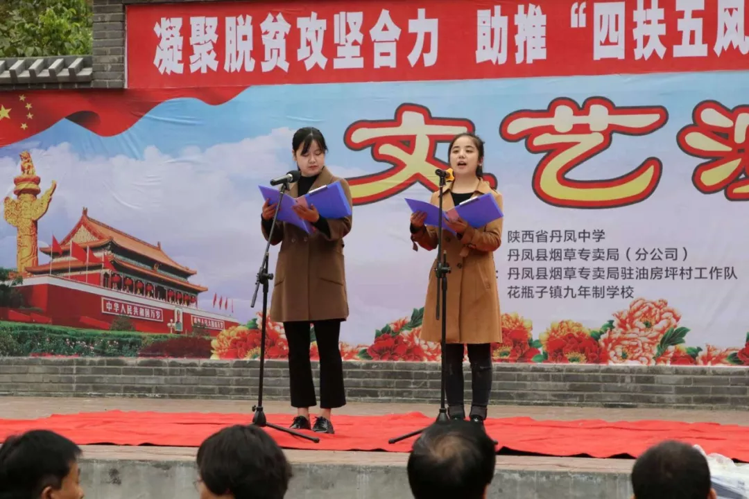 銳意扶貧播大愛,勤勞致富奔小康,正當(dāng)脫貧攻堅(jiān)進(jìn)入攻堅(jiān)拔寨的沖刺階段,10月17日,在舉國上下開展“第五個(gè)全國扶貧日”之際,由陜西省丹鳳中學(xué)、花瓶子鎮(zhèn)黨委政府、丹鳳縣煙草專賣局、丹鳳縣國庫支付局主辦,丹鳳縣煙草專賣局駐油房坪村工作隊(duì)、花瓶子鎮(zhèn)九年制學(xué)校、油房坪村民委員會(huì)共同舉辦《凝聚脫貧攻堅(jiān)合力、助推“四扶五風(fēng)六化”共建美麗油房坪村》文藝演出。