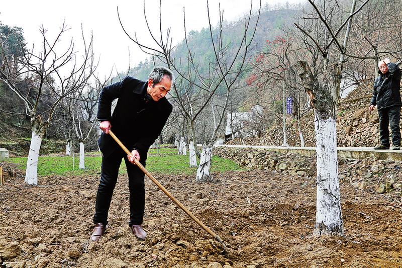 清晨,58歲的趙家安在地里的核桃樹下忙活著,作為核桃科管員,冬季及時清理樹下落葉是他的工作之一。清理結束后,趙家安繞著核桃樹拓盤。“來年春夏,如果雨水過多,拓盤可以防止核桃樹被泡根。”趙家安邊忙活著邊解釋。
