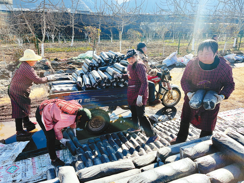 一月六日,在丹鳳縣竹林關(guān)鎮(zhèn)張塬村滑子菇生產(chǎn)基地內(nèi),工人們正忙著將新的菌棒裝車運(yùn)往菌棒培育棚。據(jù)了解,該基地二O二五年計(jì)劃年接種菌棒四十萬(wàn)袋,附近村民閑暇時(shí)間可通過(guò)在基地務(wù)工,實(shí)現(xiàn)家庭增收。(本報(bào)通訊員 王 蒙 攝)