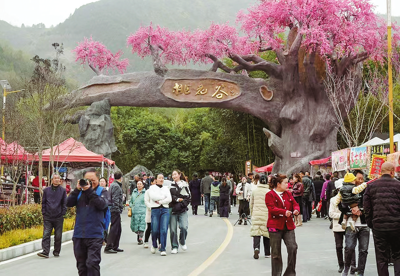 春意濃濃,桃花、櫻花、杏花漸次開放,農家小院隱沒在一片花的海洋里,讓人以為誤入了世外桃源。這幾年,隨著桃花谷景區的提質升級,吸引了一撥又一撥的游客來這里拍照、打卡,周邊農家樂的生意也越來越紅火,魏發治的農家樂就是其中一個成功典型,“大家都是沖著好生態來的。”他笑著說。