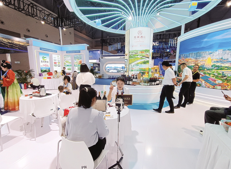 此次參展期間,丹鳳酒莊精心打造了視覺盛宴:醇香品鑒區里,10多款佳釀在醒酒器中綻放琥珀光澤;數字展示屏前,葡萄園四季流轉的影像與百年酒窖的斑駁光影交相輝映;云端直播間內,主播手持“大芳”牌酒標復刻版娓娓道來。參展期間,丹鳳酒莊通過線上線下聯動奏響交響曲——現場接待近千名客商品鑒洽談,云端直播間收獲超10萬次互動,創新營銷模式實現銷售額突破12萬元。