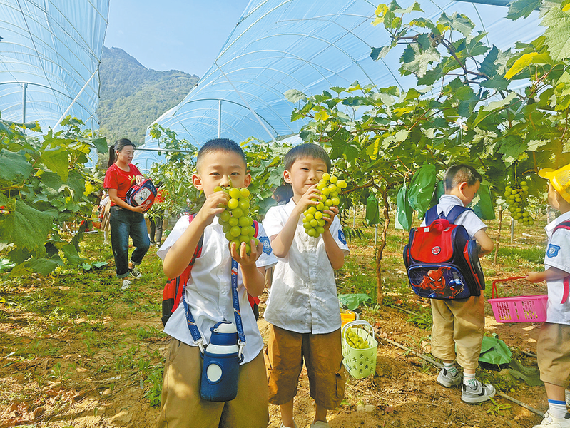 研學活動中,孩子們體驗葡萄采摘的樂趣。