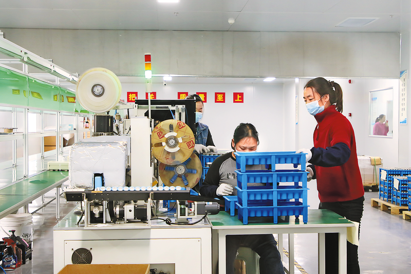 11月20日,在位于丹鳳縣的陜西朝陽動(dòng)力電池總裝基地項(xiàng)目生產(chǎn)車間,工人正在組裝儲(chǔ)能電池。該項(xiàng)目總投資3.3億元,項(xiàng)目全面運(yùn)營后,預(yù)計(jì)年產(chǎn)值達(dá)3億元、利稅2200萬元,帶動(dòng)就業(yè)300余人。 (本報(bào)記者 楊 萌 攝)