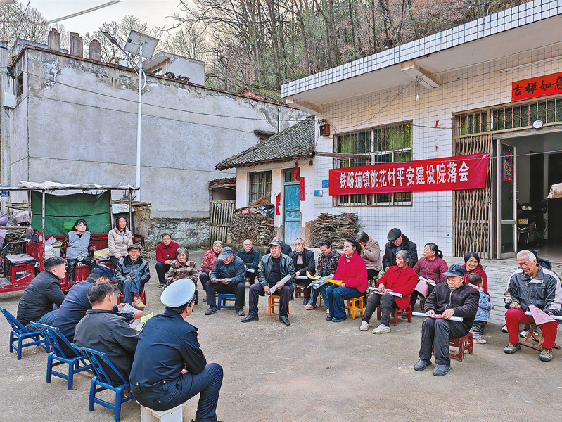 近日,丹鳳縣鐵峪鋪鎮各村(社區)組織召開院落會,通過與群眾面對面拉家常的方式,了解群眾需求,解決矛盾糾紛,并向群眾宣講森林防火、冬季用火用電等安全知識。圖為十一月二十七日,該鎮桃花村召開平安建設院落會現場。 (本報通訊員 田 東 攝)