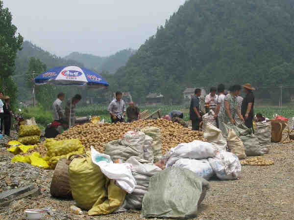 今年,山陽縣為了加大馬鈴薯新品種更新和先進生產技術的推廣,建立馬鈴薯高產創建示范方1.04萬畝據專家測產驗收,平均畝產2940.9公斤。圖為高壩店鎮街道村農民收獲馬鈴薯的場景。( 張愛武 王建濤 攝)