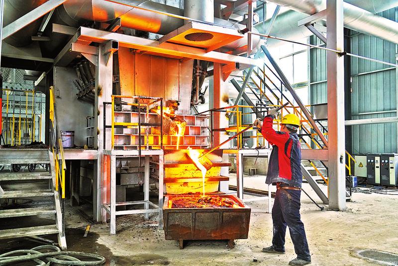 3月23日,走進位于洛南縣永豐鎮衛東工業集中區的環亞源綜合利用產業園銅業熔煉車間,富氧側吹爐火焰通紅,融化的銅水緩緩流入銅模,20多名工人忙著原料裝斗、上料、入爐、熔煉,忙碌而有序。