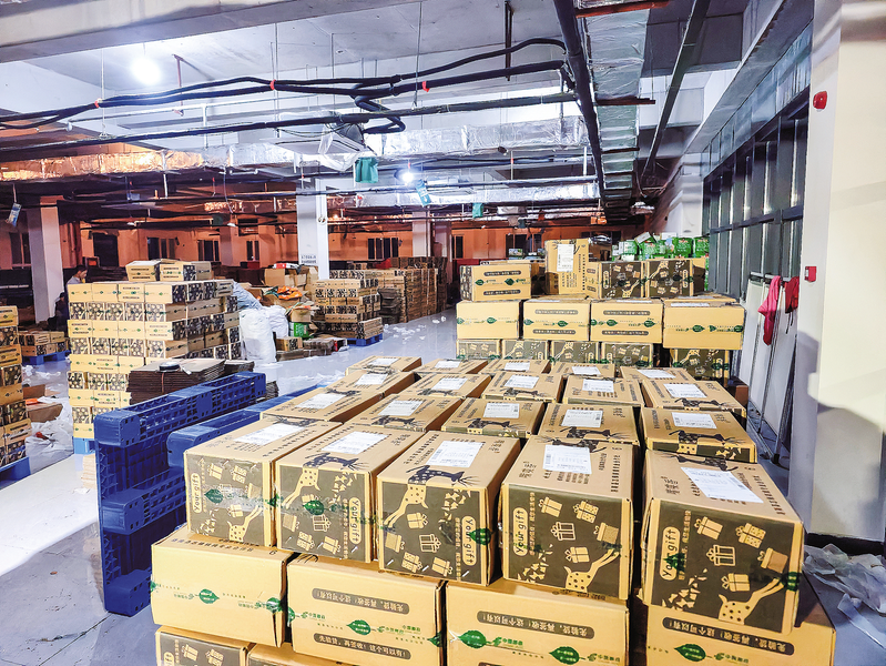 在西北核桃物流園內的洛南縣寄遞物流共配中心,準備發往全國各地的洛南土特產品。