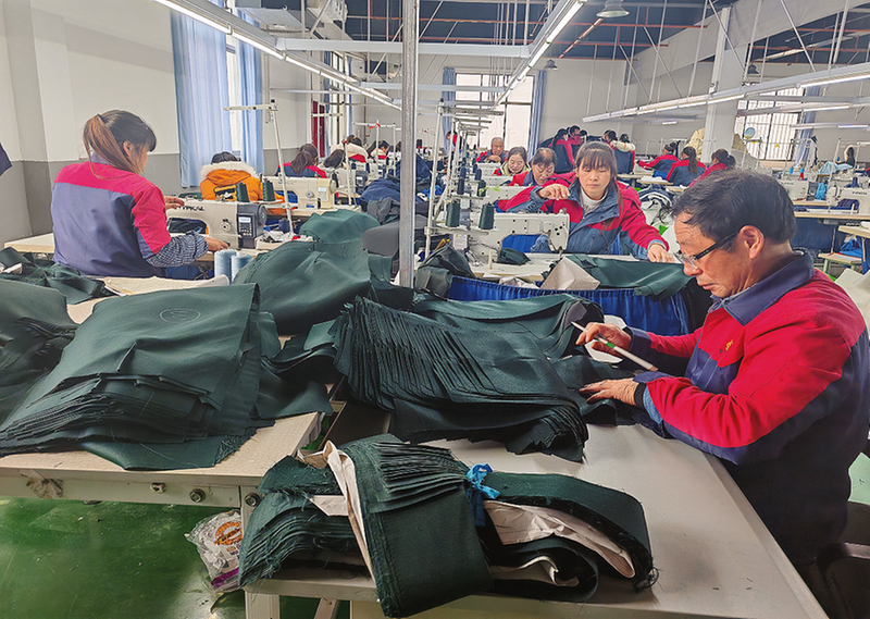 “我今年剛好50歲,就在附近住著,前些年腳受傷落了殘疾,真沒想到能在家門口找到工作,而且廠里對我很關照,專門把我安排在縫制崗位,每天坐著就把活干完了,我現在每個月能掙3000元左右,夠家里的日常開支了。”工人李存良一邊干活,一邊說。