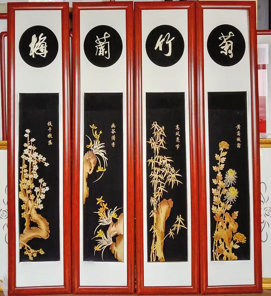 麥稈畫題材廣泛,有展現旖旎風光的山川溪流、麥浪稻田;有刻畫民俗風情的傳統節慶、勞作場景;還有寓意吉祥的花鳥魚蟲、瑞獸祥禽。