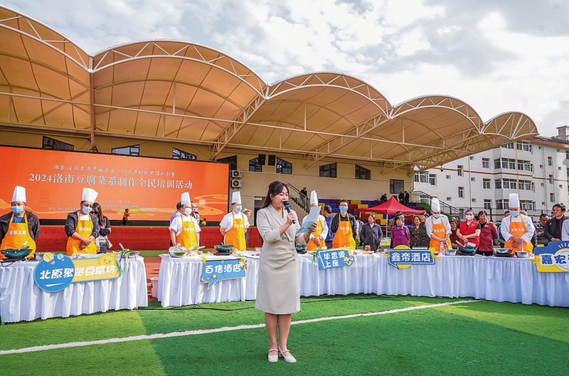 助力“全民化”振興發展。洛南堅持“全民參與、全民受益”產業發展理念,相繼召開2024洛南豆腐(西安)產業發展大會、第二屆洛南豆腐節總結表彰大會等,評選表彰優質經銷商、愛心助農企業(單位)、最受歡迎豆腐企業和豆腐手藝傳承人等,樹立良好產業發展導向。成功舉辦2024洛南豆腐菜系制作全民培訓和公益直播活動,啟動首屆“游漢字故里·品洛南豆腐”短視頻大賽,聯合西安歐亞學院舉辦洛南豆腐校園創新創業大賽,為洛南豆腐產業征集39個項目“金點子”,有效激發了全社會關注支持、參與發展洛南豆腐產業的熱情和效能。