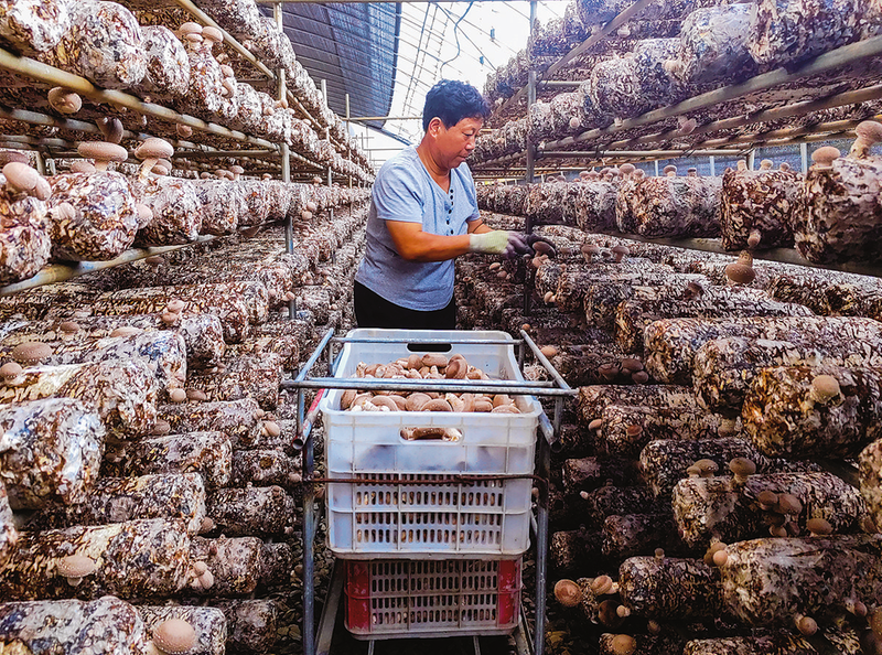 “我經常來基地干活,一個月有2000元左右的收入。我覺得家門口這個產業園辦得非常好,只要我還有能力,想繼續在這里干下去。”李蜜芳一邊嫻熟地采摘著香菇一邊說,臉上洋溢著喜悅。