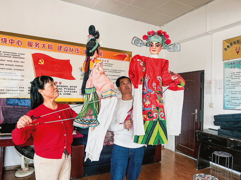 “我們就是個草臺班子,我是樂隊指揮,我媳婦是導演,經常排的有《三對面》《二進宮》《殺廟》等經典劇目。”楊正明說,為了讓表演更有神韻,他還特意請來李靜玉和省民間藝術劇院的導演進行指導,“像這娃娃頭咋轉更靈活,木偶制作有哪些竅門,樂器演奏存在什么問題,一點撥就豁然開朗了。”