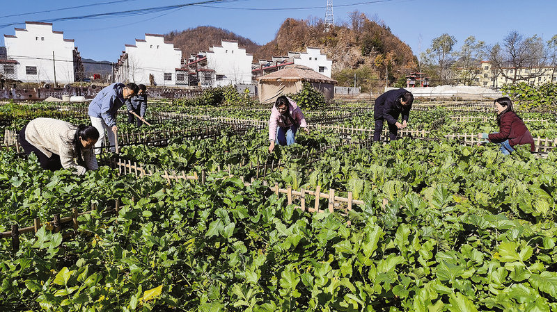 冬陽和暖,菜園中紅蘿卜、白蘿卜飽滿水靈,白菜、青菜綠意盎然,菠菜、油麥菜鮮嫩欲滴。田間,村民正忙著清理雜草、拆除干枯的茄子稈與豆角架,忙碌的身影為這片菜園增添幾分活力。