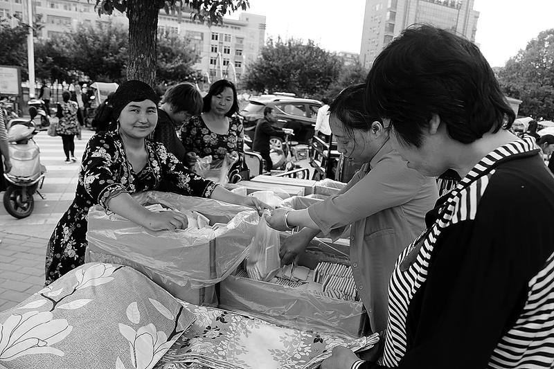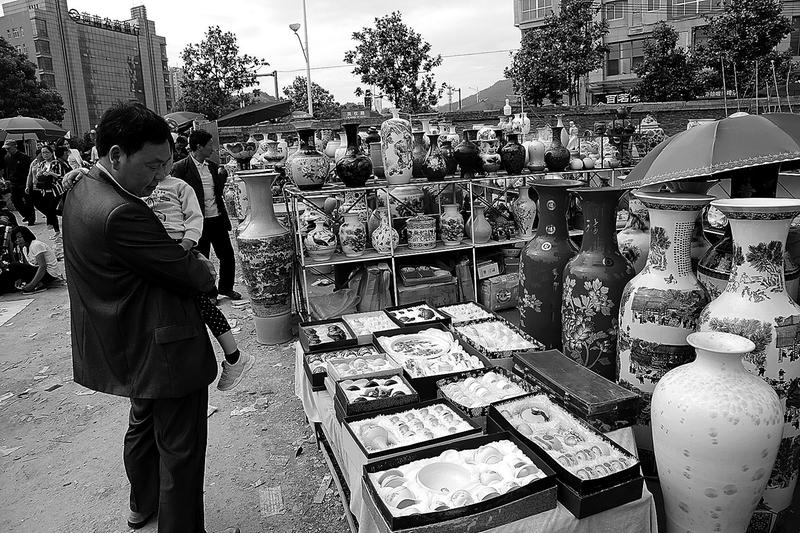 今年農歷四月八日,操著河南、湖北等地口音的商販不約而同來到商南縣城趕場子。道路上停滿了各式各樣的車輛,大貨車、小汽車、三輪車、摩托車、架子車等,應有盡有。圈定的集中交易場內一個攤位挨著一個攤位,琳瑯滿目、古色古香的玉器等裝飾品顯示著古會特有的韻味,臨時搭建的帳篷內有的掛滿紅紅綠綠的衣褲鞋帽,有的擺著鍋碗瓢盆、桌椅板凳、簸箕、竹掃帚等生活用品,商販的吆喝聲不絕于耳,來自四面八方的群眾邊逛邊看,采辦貨物,挑挑選選,好不熱鬧。