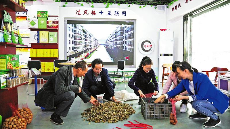 過風樓鎮還借助網絡平臺,在集鎮電商脫貧一條街內建立了商南首個香菇交易市場——龍山香菇交易市場,2017年香菇交易量達110萬斤,其中線上交易量占37%,總交易額達3000萬元。