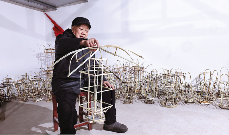 汪祥家說,他從十幾歲時,就跟隨本家的叔叔伯伯學習花燈的制作技藝,這一扎就是60多年。起初,他是照著長輩們做的燈樣兒扎,一個像樣的花燈架子,有時要做四五遍。憑借著濃厚的興趣和堅韌的毅力,加之不斷地摸索創新,到如今,只要是腦海里想出來的事物,他都能扎得出來。