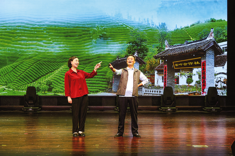 據了解,該小戲劇情以村黨支部書記帶領村民發展茶產業為背景,塑造了樸實、平實、真實的基層干部形象,歌頌了村黨支部書記用智慧、熱情和汗水,一心一意帶領群眾走出一條以茶致富之路的形象。