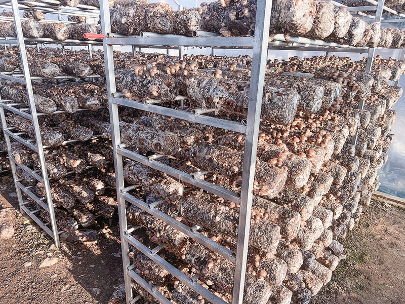 11月19日,在店坊河村香菇種植基地,暖陽(yáng)下的香菇長(zhǎng)勢(shì)良好。