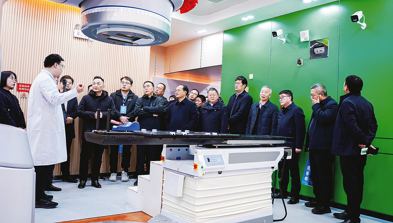 11月27日,山陽縣人民醫院舉行放療中心直線加速器開機儀式,腫瘤科醫師向參觀人員講解直線加速器的基本原理及科室業務開展情況。