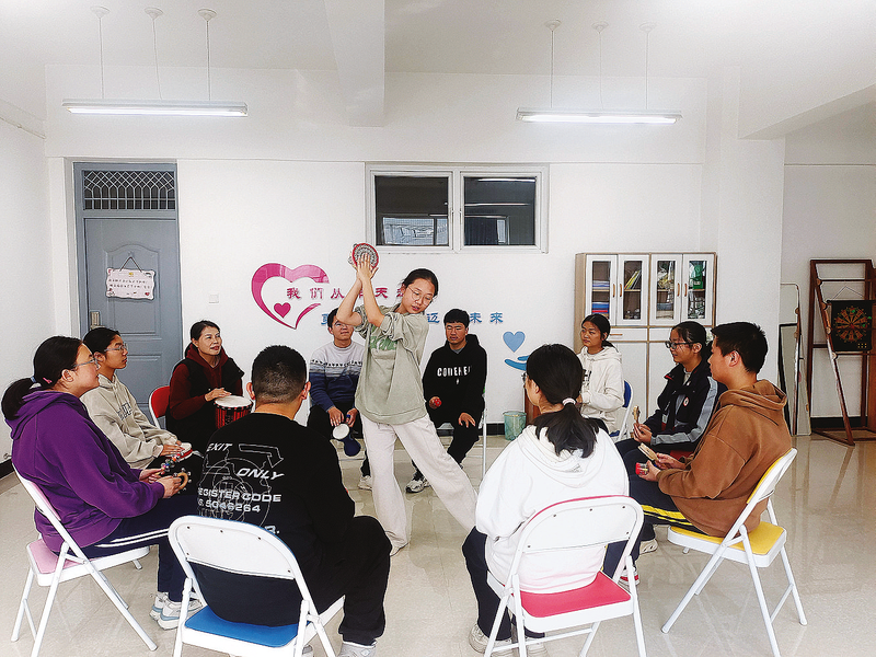 在“組團式”幫扶的推動下,山陽中學南校區建立了“心靈驛站”及蘇陜協作“組團式”幫扶心理工作室。圖為南京心理學老師張文芳與學生互動場景。