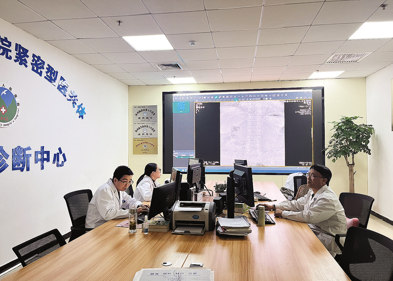 縣醫院診斷中心內,影像醫生正在對傳來影像進行診斷。