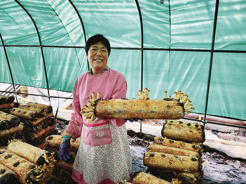 務工群眾收獲成熟的滑子菇